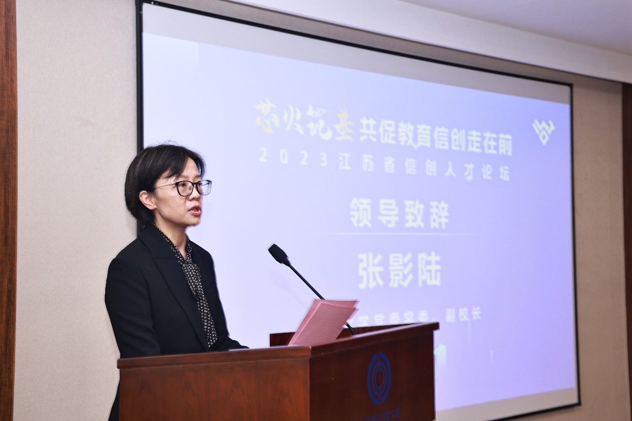 党委常委、副校长张影陆致欢迎辞。张影陆副校长表示,信创产业发展需要具备自主研发复杂软件系统能力的创新人才,作为人才培育的主阵地,学校需承担创新人才培养重任,将信创课题纳入教学。面对人才发展现状,张影陆认为应基于产教融合构建信创人才培养体系,提升系统培育能力。