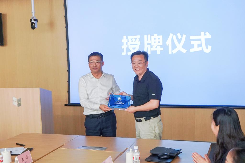 学生就业工作的信任和支持,并授予中科微至“大学生就业最佳战略合作伙伴”荣誉牌。他强调此次调研也是一次“访企拓岗”行动,希望通过进一步跟踪和反馈,了解企业的人才需求,真正实现教育链、人才链与产业链、创新链的有机结合,更好地加强人才培养的质量;希望通过深入了解中科微至在智能装备系统领域的最新研发成果和应用情况,进一步探讨校企双方在科学研究、技术创新等方面的合作。