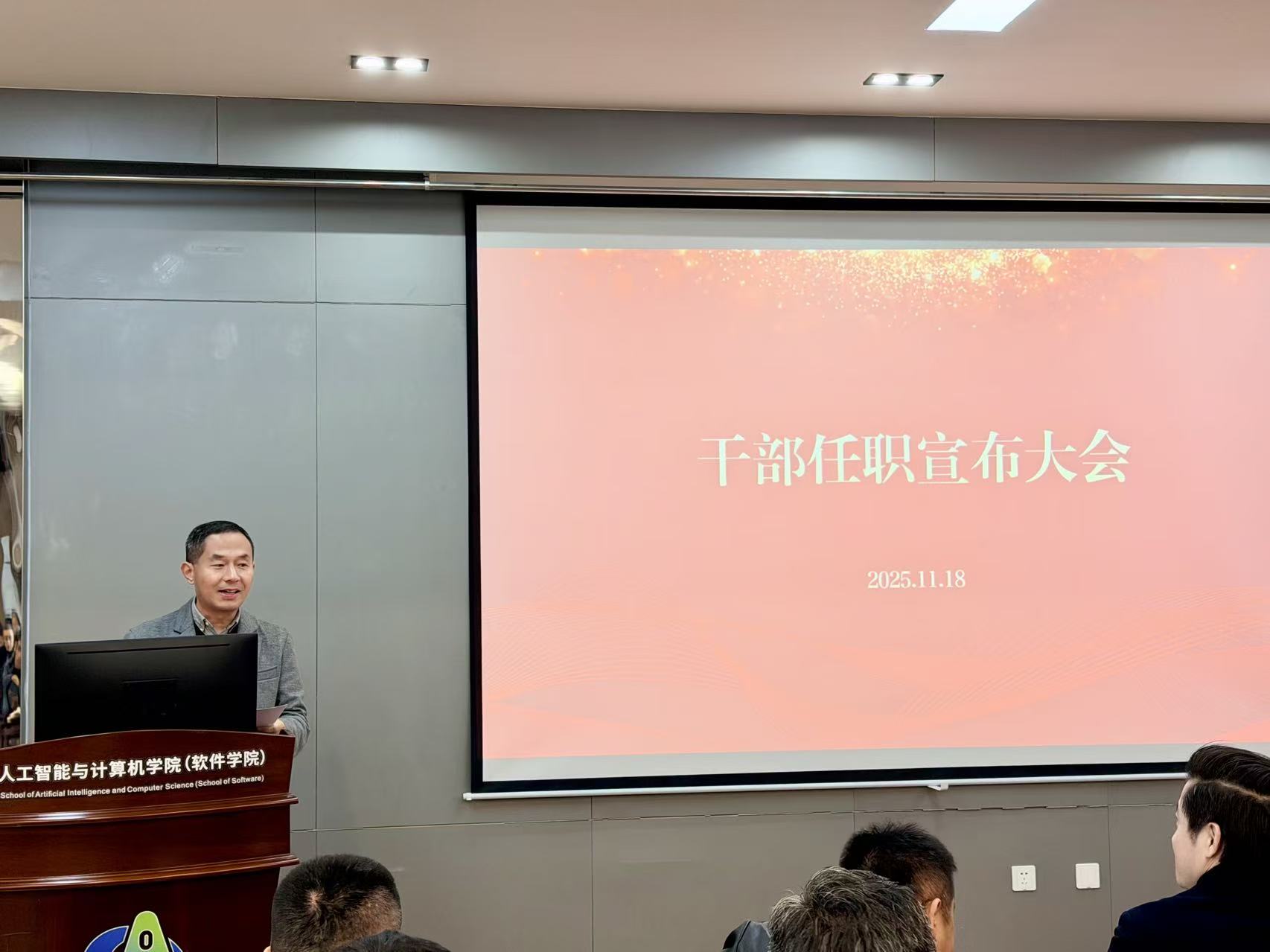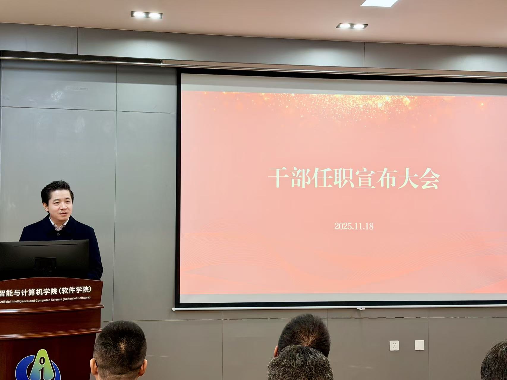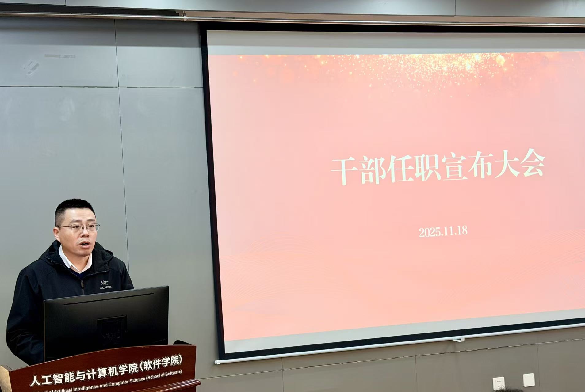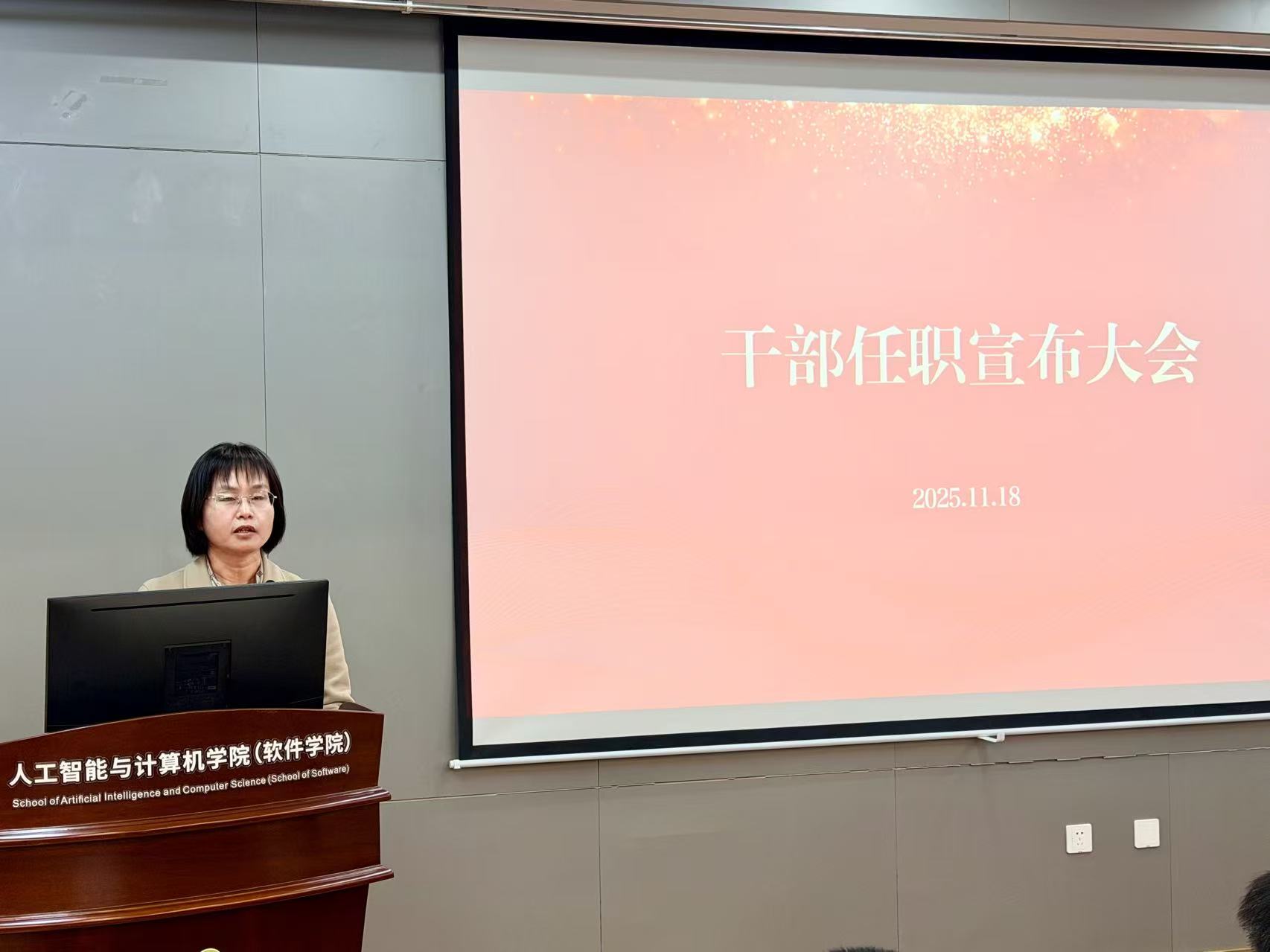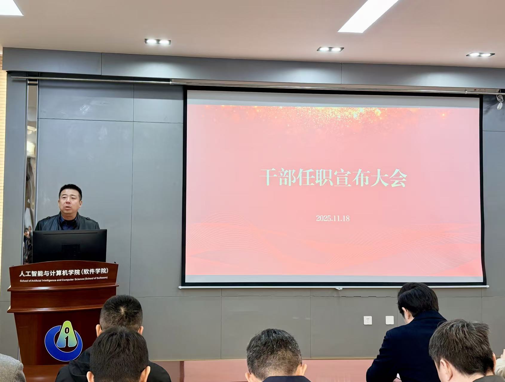 2025年11月18日下午,人工智能与计算机学院领导干部任职宣布大会在学院B310报告厅举行,校党委常委、副校长马鑫,校党委常委、党委组织部部长张梁出席会议,学院全体教师参加会议,方伟主持会议。