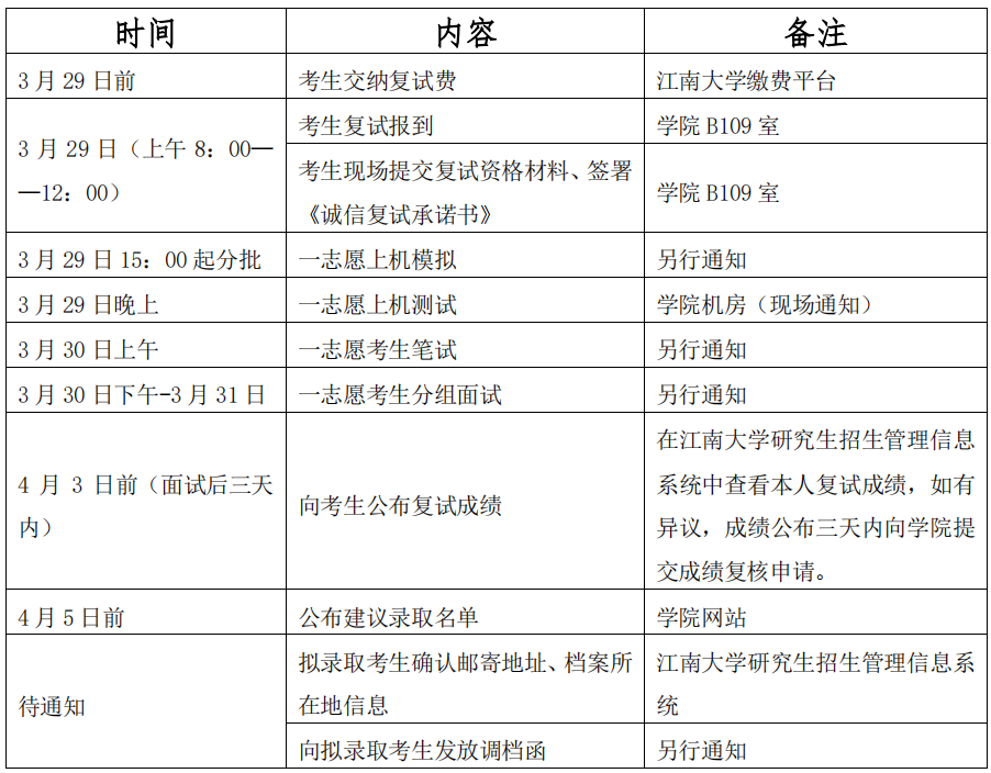 注:调剂考生相关安排另行通知。