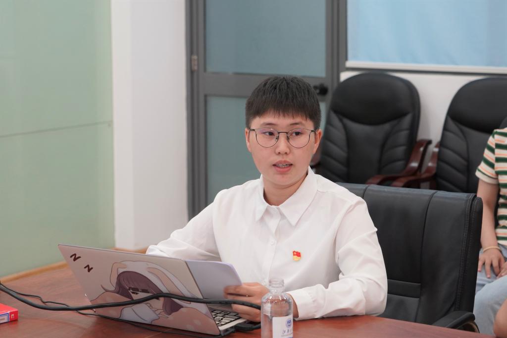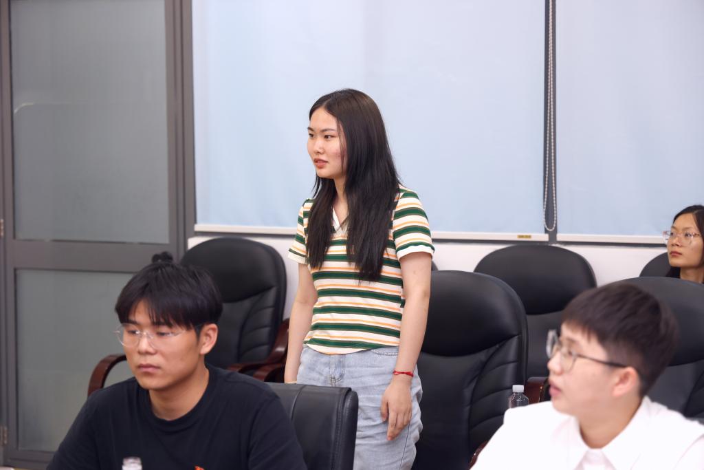 校长陈卫在2023年毕业典礼上的讲话以及自身参与社会实践的经历,向同学们阐述了“自找苦吃”的精神内涵,表达了青年学生要传承“自找苦吃”的品质,勇担科技报国的责任;点面结合地介绍了《习近平与大学生朋友们》的内容,分享了自己的阅读收获,引发了支部党员们的现场的学习讨论。支部党员张文杰结合科技热点chatGPT,分享自己面对科技前沿挑战时的态度和立场,激励广大同学将“卡脖子”技术难题作为今后学习和突破的方向,迎难而上,为实现高水平科技自立自强贡献自己的力量。活动还设置了主题教育互动问答和为学院暑期重点社会实践团队授旗等环节。