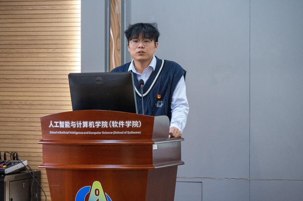 支部博士生代表于子皓同志围绕“智行千里 创新报国”这一主题,进行了“大模型技术探索与实践”的分享。他以“科技是第一生产力”为切入点,生动展现了科技创新在推动国家发展和社会进步中的核心作用;围绕大模型的应用现状,以自身研究课题为例,分享了如何通过技术创新解决“卡脖子”问题,展示了一名党员对科技创新的执着追求和对国家发展的深切关心。