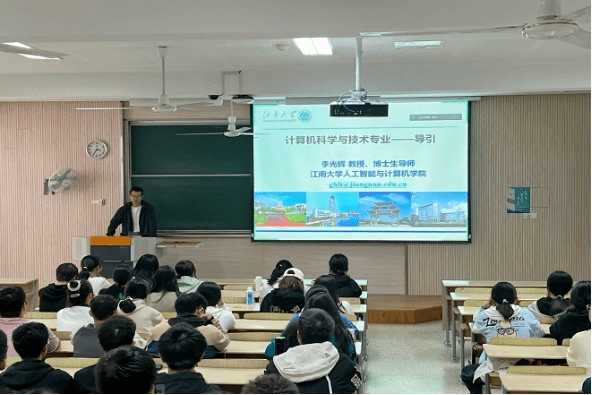 教授、博士生导师李光辉老师在2C203为计算机科学与技术专业2022级学生做专业转型教育。李老师主要从为什么要学计算机、怎样才能学好计算机和同人小说