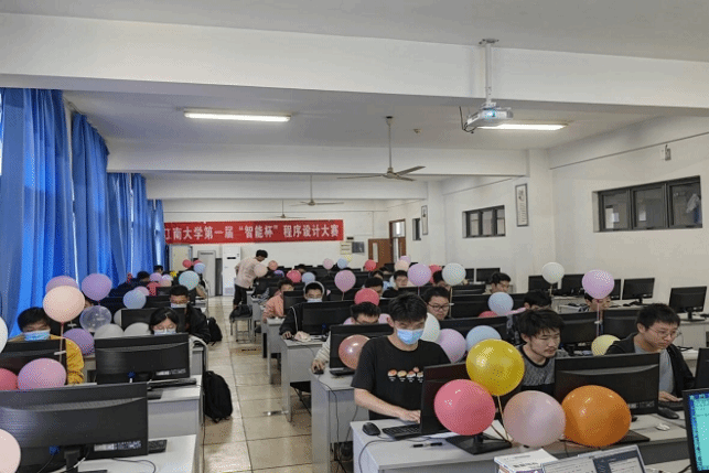 此次大赛于10月11日-14日发布大赛通知且开放报名通道,吸引了全校来自不同学院近300名同学报名参赛。大赛共分三个阶段:网络预选赛、热身赛及现场赛。经过网络预选赛后,有44名同学进入到最终的热身赛及现场赛。现场赛中每个题目对应一种颜色的气球,成功解答该题目的队伍会得到对应颜色气球。比赛现场竞争激烈,同学们争分夺秒,气球争相升起,经过长达5个小时的角逐,同人小说