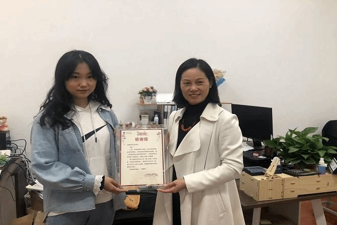 陈祎为王钒宇、丁镛焜同学颁发感谢信