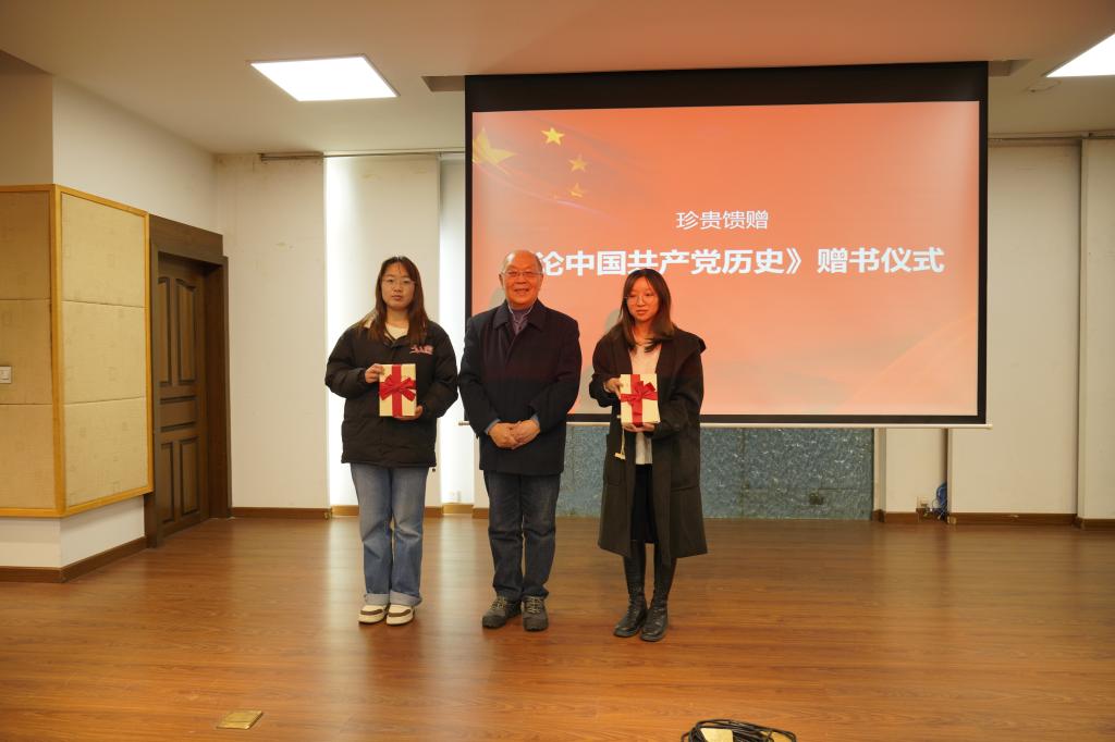 、理学院班级赠送《论中国共产党历史》书籍,他希望青年学生从党史中汲取前进动力,传递信仰力量,厚值爱国情怀。