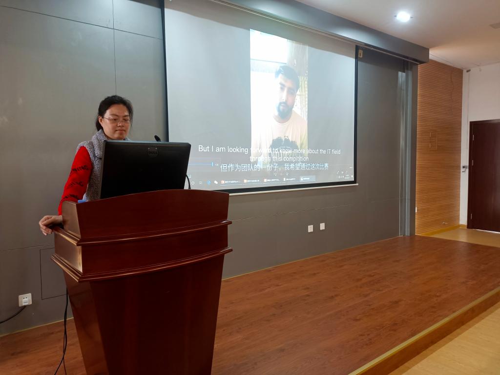 大赛优秀指导老师罗晓清介绍了带领留学生参加服务外包大赛的经历,从大赛的选题技巧、技术创新性、实用性以及最后的答辩技巧等方面分享自己的竞赛经验,寄语大家要明确自己的目标以及提高自己的编码能力。