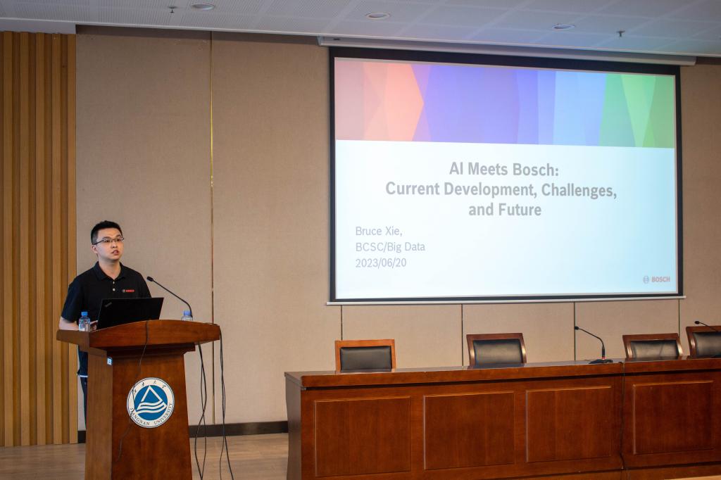 企业报告和学生分享环节,博世软件创新中心大数据团队负责人Bruce Xie介绍了博世软件在人工智能相关领域的项目案例,并从专业角度解答了如何提高就业竞争力等问题。服务外包大赛获奖学生于家艺从如何选题、团队组建以及如何准备PPT等方面分享了他参加学科竞赛的经验。CCF同人小说