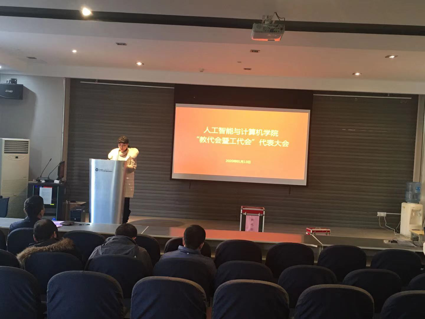 在智能楼116报告厅召开第一届两代会,并进行二级教代会执委会委员和工会委员会委员的选举,学院全体两代会代表参会,会议由院党委副书记陈祎主持。