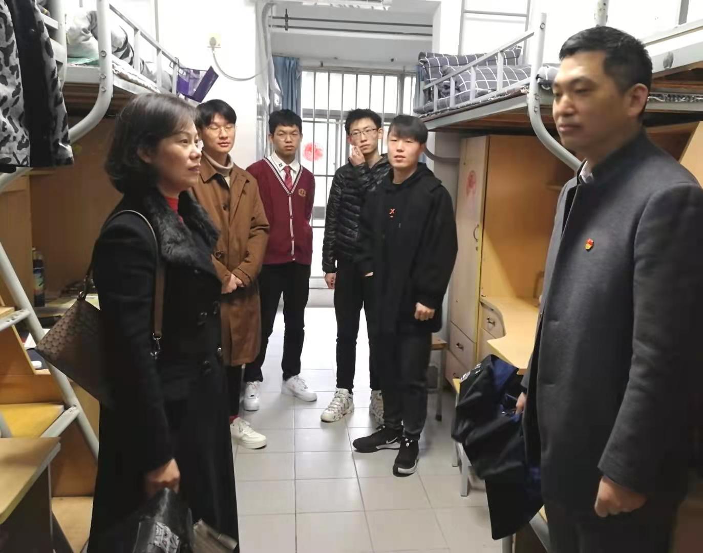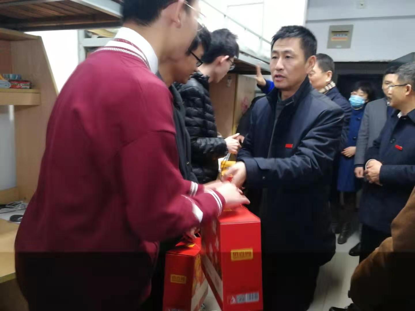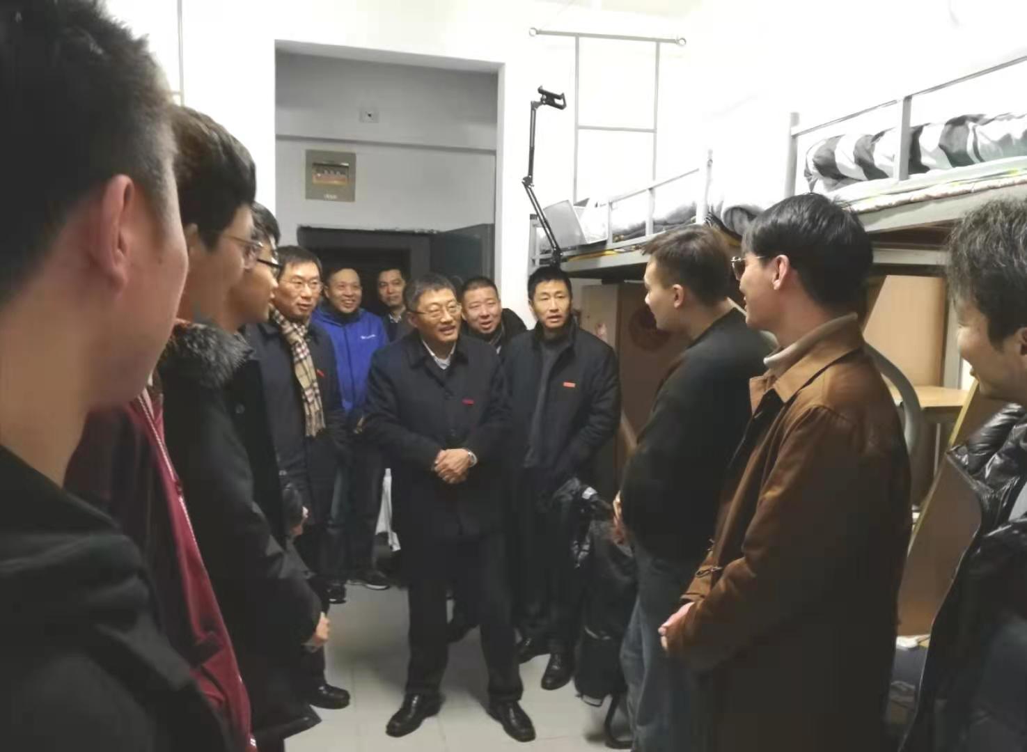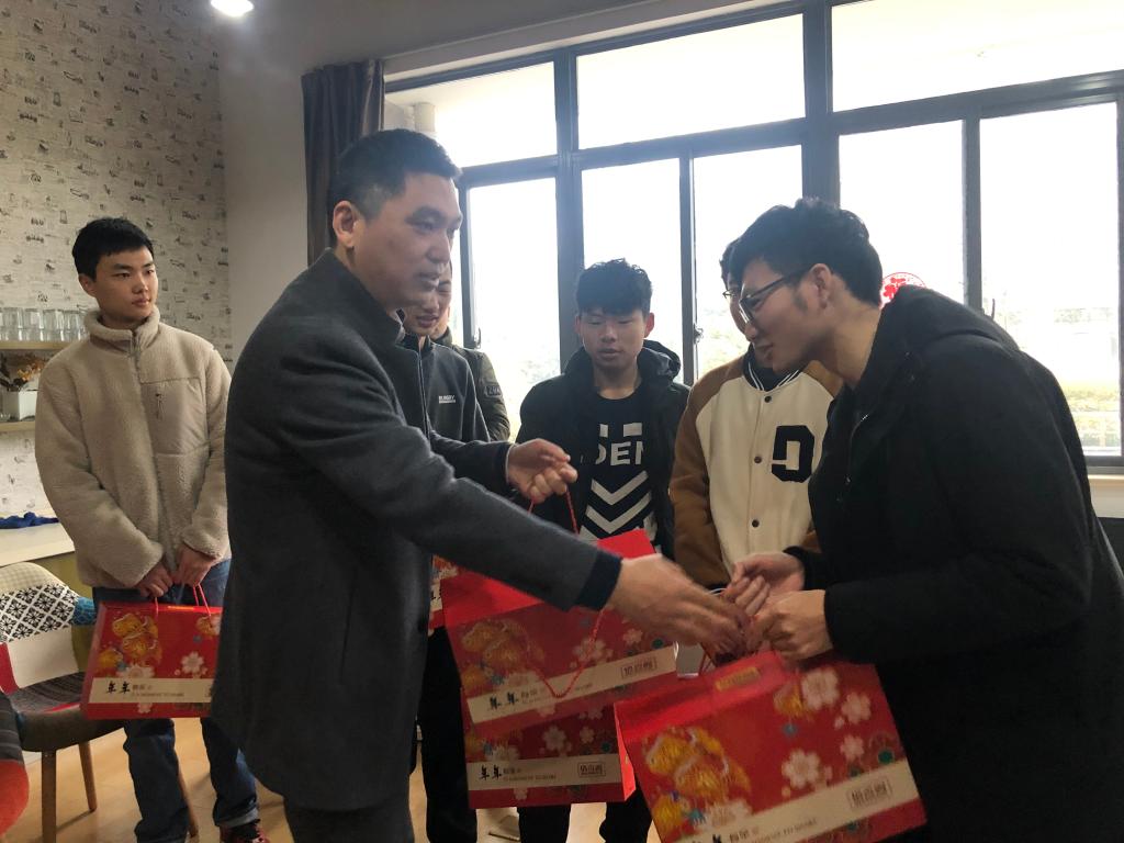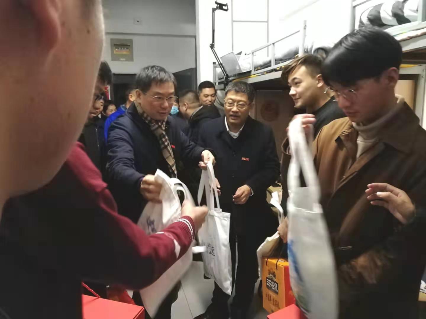 留校过春节的学生,向他们并通过他们向全体学生致以新春的祝福。宣传部部长倪松涛、校办主任张梁、学生工作部部长张菁燕、学院党委书记张华、院长刘渊、党委副书记兼副院长陈祎等一并走访慰问。