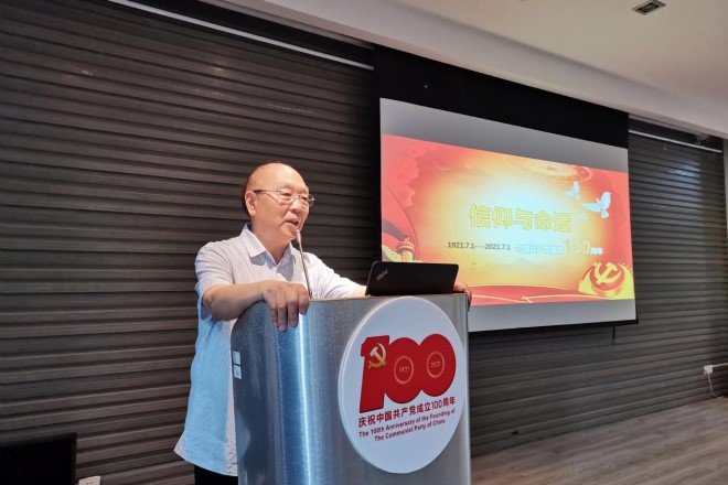 大会在国歌声中拉开序幕。首先,张发海作了题为“信仰与命运”的主题党课,他从党的历史是“一部为践行信仰、为人民谋幸福的奋斗史”“一部坚定自己信念、为中华民族谋复兴的探索史”以及“学习党史以明理、增信、崇德、力行”三个方面深情地讲述了建党百年以来,无数共产党人为人民解放抛头颅、洒热血,救万民于水火的英雄事迹,全方位展现了共产党人因党而生、为党而战、向党而强的浴血奋战史,深入浅出地对“共产党人的初心和使命、共产党胜利的原因”做出精确解。张发海鼓励在场青年党员,要深读党史这本“教科书”,用信仰书写青春,实现人生价值,升华人生境界。