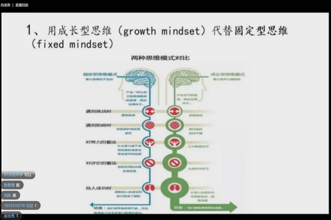 讲座伊始,肖凌燕老师从刚刚入学的大学生心理状况出发,引入了逆境的概念和特点,即常态性、普遍性、难以预测和对立统一性。紧接着,肖凌燕老师从不良的情绪应对、行为应对、认知应对三个方面分析了面对逆境时的种种表现。随后,老师向同学们分享了如何在逆境中进行有效的心理应对,建议同学们要有正确的认知:用成长型思维代替固定型思维,避免过度思维和“白熊效应”;要采取积极的行动:反复尝试,及时求助,适时地进行补偿、升华和止损;同时,也不能忘记关爱自己,善待自己,静观当下并且有规律地生活。最后,肖老师表达了对同学们的美好希望与祝愿,希望全体同学都能在逆境成长中积极应对消极心理,必要时可随时与校心理中心的老师进行交流沟通。