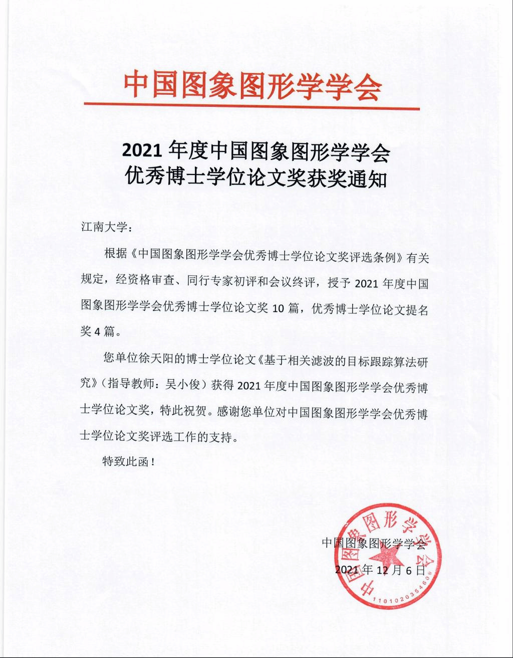 人工智能,作为社会发展的驱动力,已经进入到我们生活以及军事领域的各个方面。在近期,我校在人工智能领域中获得了多项奖励。近日,我校人工智能科研团队又获重要科研成果奖励。吴小俊教授指导的博士学位论文《基于相关滤波的目标跟踪算法研究》荣获了2021年度中国图象图形学学会(CSIG)优秀博士学位论文奖(徐天阳,吴小俊)。该奖项在全国范围内仅有十篇论文入选,参加竞选的学位论文大多来自国内的知名高校,这也是同人小说