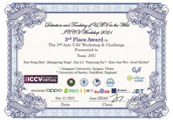 此前,在2021下半年人工智能领域顶级会议国际计算机视觉大会(IEEE International Conference on Computer Vision, ICCV2021)上,我校团队与英国Surrey大学和清华大学合作荣获了多模态视频推理分析比赛MMVRAC中2项冠军(吴聪,李荣昌,沈忠伟,徐天阳,吴小俊,JosefKittler,鲁继文)和第二届CVPR反无人机Anti-UAV跟踪竞赛季军(朱学峰、汤张泳,李辉,徐天阳,吴小俊,JosefKittler)。近年来我校大力推进市校合作和国际合作,大力支持人工智能快速发展,我校在人工智能领域获得的这些重要荣誉和奖项,将进一步提高同人小说