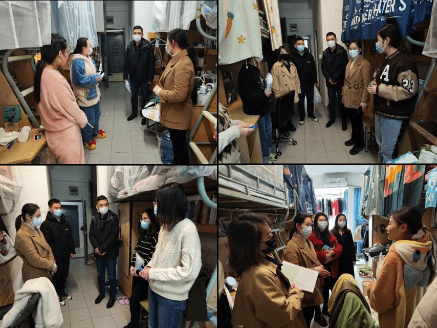 为落实学校常态化疫情防控政策,积极引导学生配合学校防疫,3月22日中午,学院党委书记张华、党委副书记副院长陈祎带领学院辅导员深入学生宿舍,进行走访与慰问,为同学们送上疫情防控物资。走访过程中,学院领导与同学们亲切交流,详细了解学生的生活状态和线上上课情况,倾听学生们对常态化疫情防控下校园生活的感受,引导同学们从科学的角度看待疫情防控,做到思想上不松懈、行动上稳落实,遵守学校的各项防疫要求。交流中嘱咐同学要调整学习状态,制定新学期计划,以饱满的状态迎接线上教学期间的学习生活。并且嘱托学生党员及骨干要发挥模范带头作用,服务同学,为学院疫情防控常态化工作贡献属于自己的青春力量。