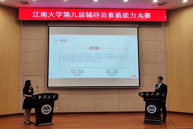 本届辅导员素质能力大赛对标国赛新赛制,初赛为基础知识测试,经过激烈比拼,辅导员戴士焱、王牧与其他20位优秀辅导员入围决赛。决赛设置有案例研讨和谈心谈话两个环节,分别考察辅导员研讨实际问题和教育引导学生的能力。辅导员戴士焱、王牧在案例研讨环节运用相关学科知识和方法开展大学生思想政治教育、分析研判、解决问题,在谈心谈话环节准确把握大学思想政治教育理论及政策,把握学生成长成才规律,注重将解决理论困惑和实际问题相结合,在众多优秀的辅导员中脱颖而出,展露锋芒。