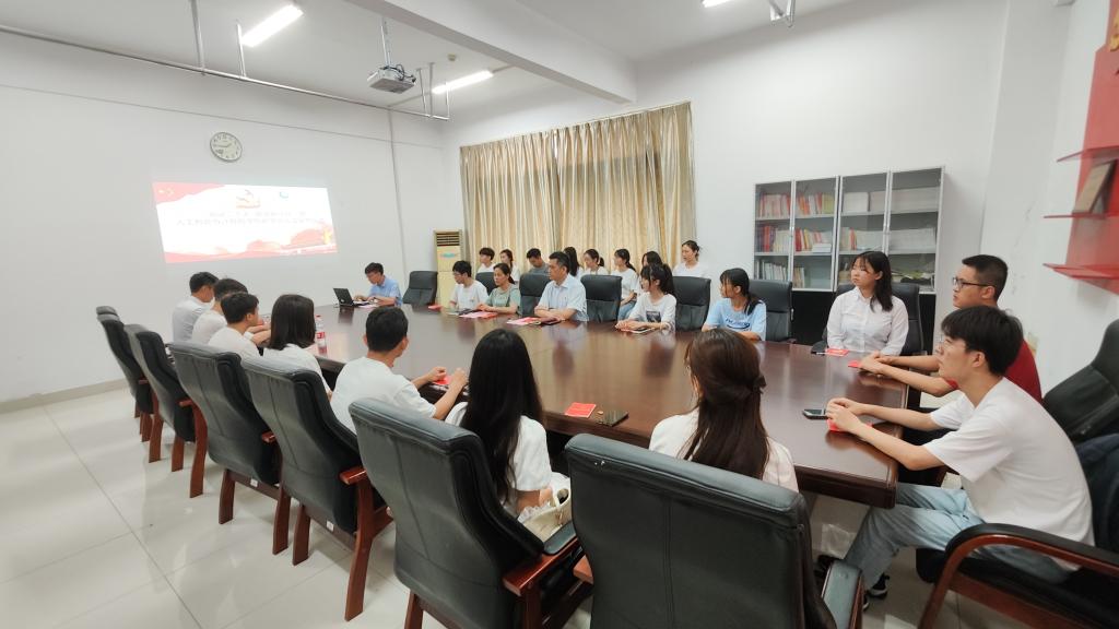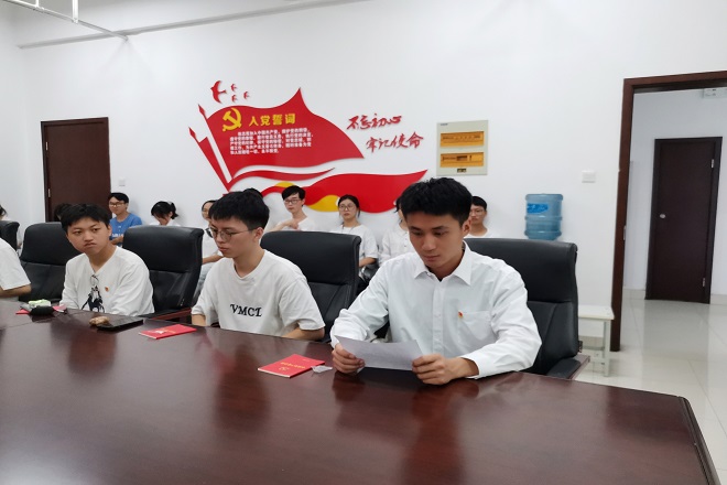 新党员入党宣誓仪式。学院党委书记张华,党委副书记、副院长陈祎,2022年上半年新发展党员参加会议。会议由学院辅导员李猛主持。