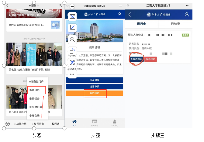 考生采用“访客预约”入校,考生请按照以下步骤进行操作: