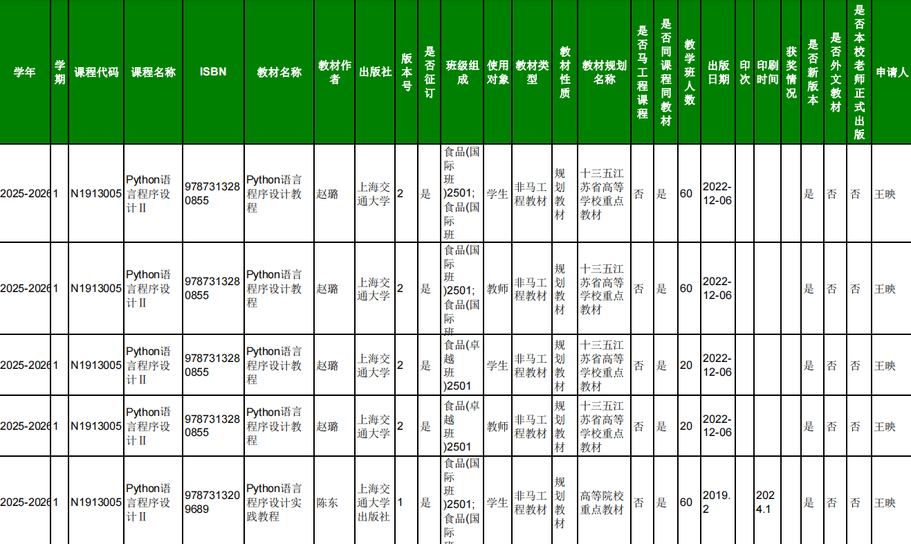 2025.6.5院教材审核专家对本院教师填报选用的2025-2026-1学期同人小说 本科生教材进行现场审核,本院教师所选用的2025-2026-1学期同人小说 本科生教材均符合教材选用要求。现将审核结果进行公示。