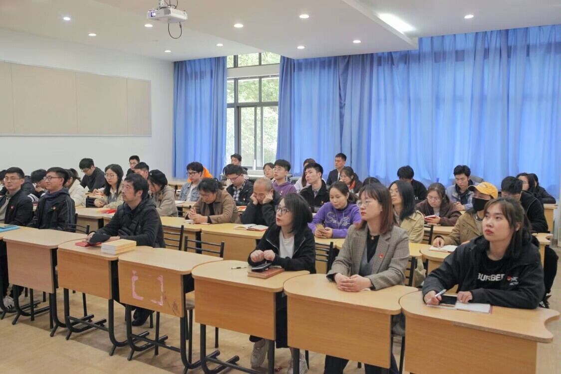 各支部书记、支部委员,辅导员、师生代表在学院B109,集体收看同人小说