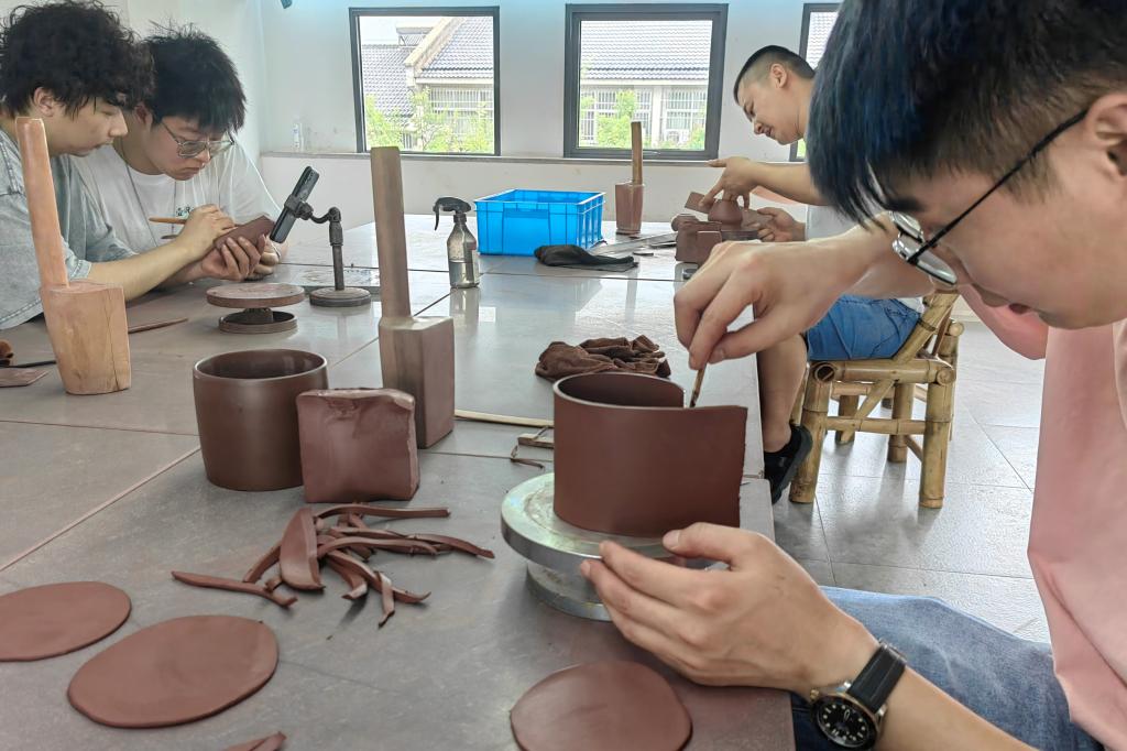 实践团成员制作紫砂杯