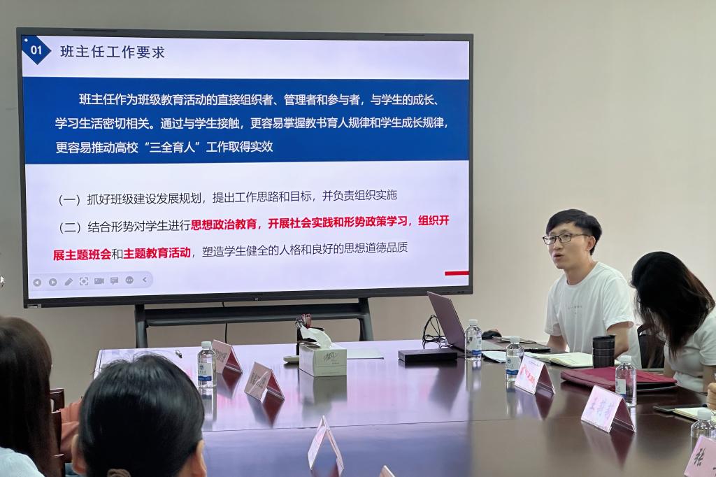 优秀班主任评选办法,并围绕“如何开展好第一次主题班会”“如何做好新生心理普测”“如何营造班级优良学风”等话题与在场师生进行交流。