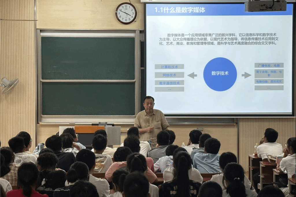 9月27日下午3:30,学院教授、博士生导师刘渊老师在1A115为2023级数字媒体技术专业的同学们开展了专业转型教育讲座。讲座上,刘教授结合时事,以亚运会上的“数字火炬手”为切入点,围绕“什么是数字媒体”“如何利用数字媒体解决问题”“新生该如何展开数字媒体的学习”三个方面对新生展开了专业的指导。刘教授将生动的事例与自己的丰富阅历结合,深入浅出地为同学们答疑解惑,让同学们不仅对于自身专业有了更深刻的理解,更让同学们对自己今后的发展方向有了全新的认识与规划。