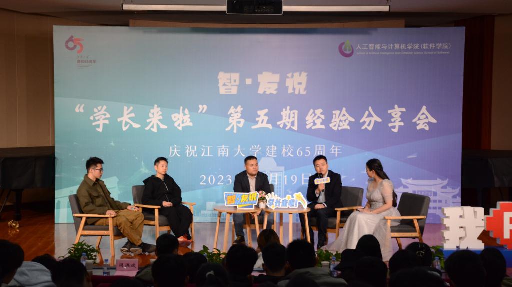 圆桌访谈环节,四位校友围绕学生关注的学业发展、生涯规划、行业前景等重点进行深入探讨,并逐一为现场学生的困惑指点迷津。