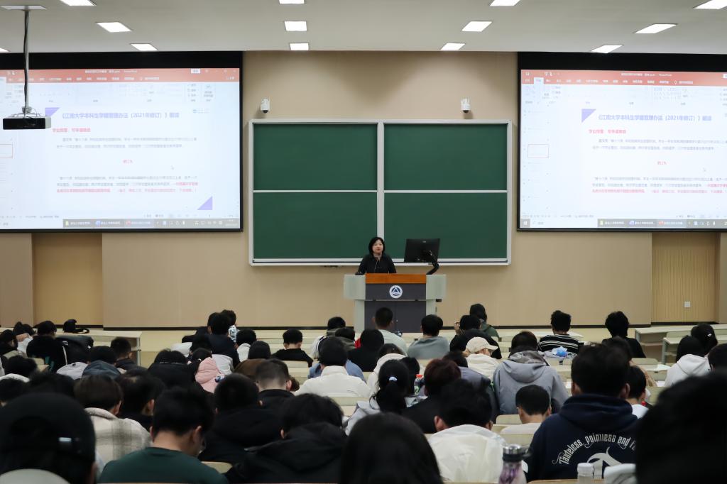 陈捷从人才培养方案、选课退课、课程考核评教三方面为学生进行一场全面的学习管理指导。她强调同学们应掌握本专业的人才培养方案,了解专业核心课程及要求,规划学习路径;关注重要时间节点,按照个人节奏调整课程内容量,按时选课,及时评教。同时,她鼓励同学们利用好学校和学院的机会和资源,抓住宝贵学习机会,为未来打下坚实基础。