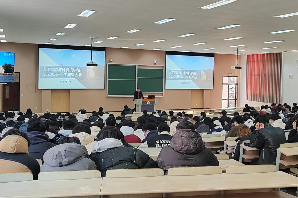 1月15日,学院在二教A127召开2023级研究生年级大会,学院副院长谢振平、研究生辅导员李猛参会。谢振平围绕研究型学习、导师制内涵、“自主学习+导师研讨”、假期安全等内容展开。他指出,严格学术规范、严格学位标准、保持身心健康对于学生发展至关重要,鼓励同学们要珍惜假期时间,不断充实自己,为未来的挑战做好准备。李猛对假期校园安全、用网用电安全、心理健康等方面内容做了提醒。