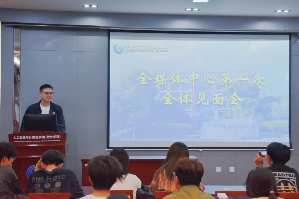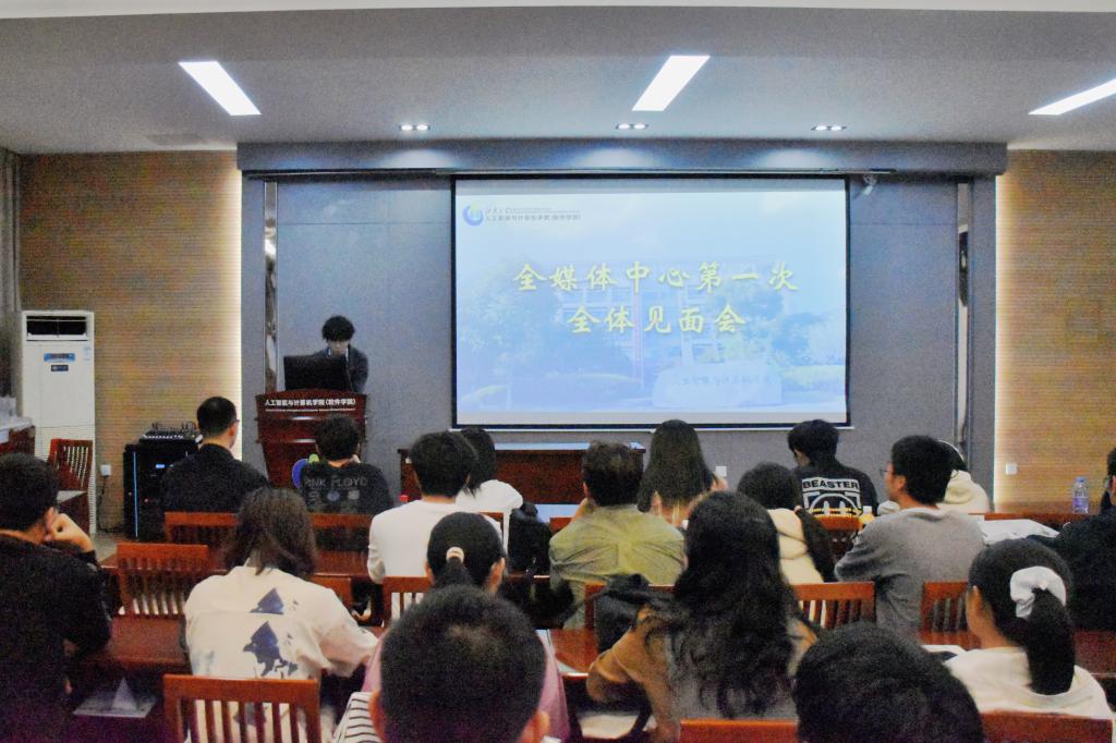 米宁对全媒体中心新成员的加入表示热烈欢迎和衷心祝贺,并以《做顶天立地、守正创新的新闻宣传工作者》为题作主旨报告。他指出,全媒体中心为智能学子提供了锻炼组织协调能力和提升新闻宣传技能的平台,希望同学们在工作中团结协作,勇于创新,端正态度,不断锤炼技能,成长为有理想、有本领、有担当的新时代青年。最后,米宁提出对全媒体中心工作要点的审慎思考,指出当下存在的问题与不足,并给出下一步工作计划与安排。