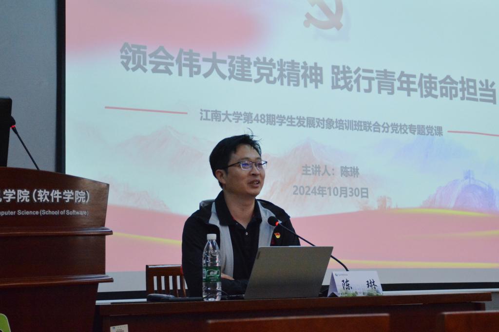 陈琳以《领会伟大建党精神践行青年使命担当》为题,从伟大建党精神的提出入手,通过讲述《觉醒年代》中的陈氏父子、习近平的七年知青岁月、时代楷模黄文秀和人民代表申纪兰等青年大学生喜闻乐见的故事,对伟大建党精神的科学内涵进行了详细阐述。他带领发展对象回顾了习近平总书记历次给青年大学生的回信,并勉励他们:一是要做到理想远大,信念坚定,立报国强国大志向,做挺膺担当奋斗者;二是要做到刻苦学习,锐意进取,展现青春澎湃动力,投身科技自立自强;三是要做到直面问题,砥砺奋进,提升自身综合素质,立足岗位积极作为。
