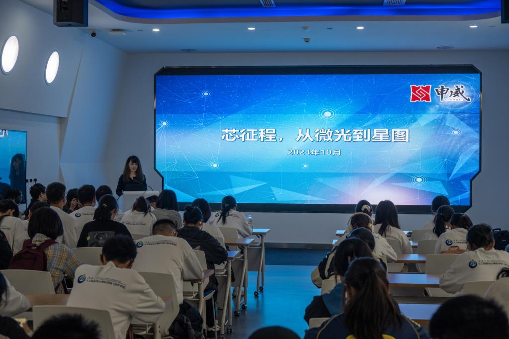 活动最后,万珊为全体同学作“芯征程,从微光到星图”主题讲座。她从国内外形势和申威发展两方面进行讲解,为同学们勾勒出一幅以申威这颗中国芯为核心,辐射整个科技领域的壮阔蓝图。她强调,在全球科技竞争日益激烈的背景下,拥有自主可控的核心技术对于国家安全和科技自立自强具有重要意义。她希望同学们能够接续奋斗精神,在申威卓越创新班里学知识长才干,将个人的理想追求融入国家科技发展的伟大事业。